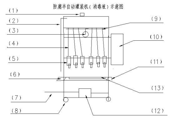 5、 在控制柜“10”上選擇手動灌裝按鈕,通過腳踏開關(guān)控制每瓶或桶的灌裝頻率;